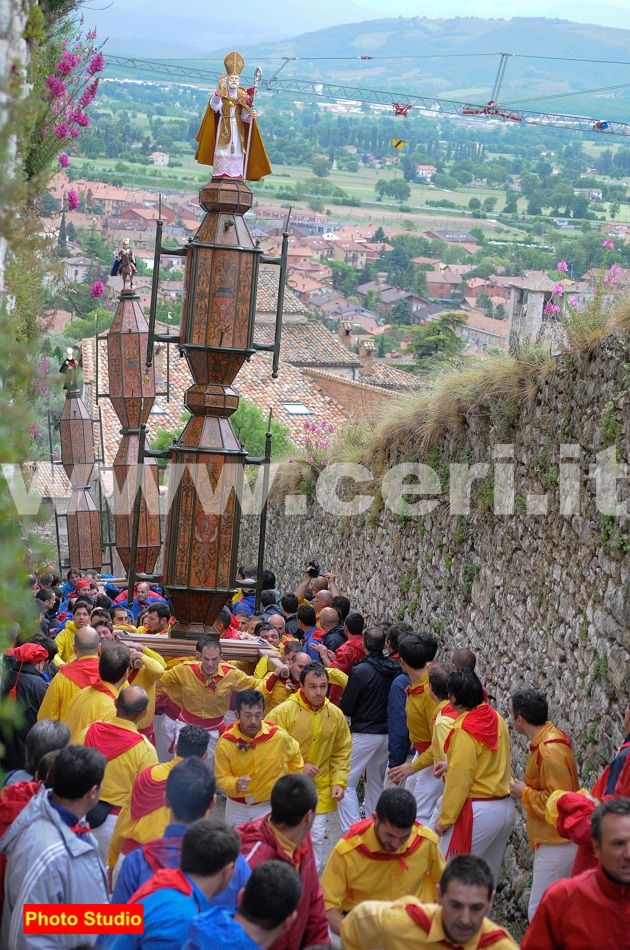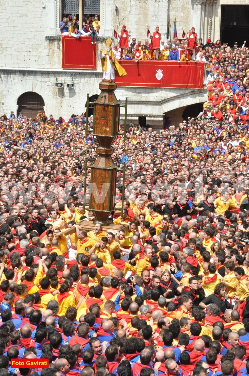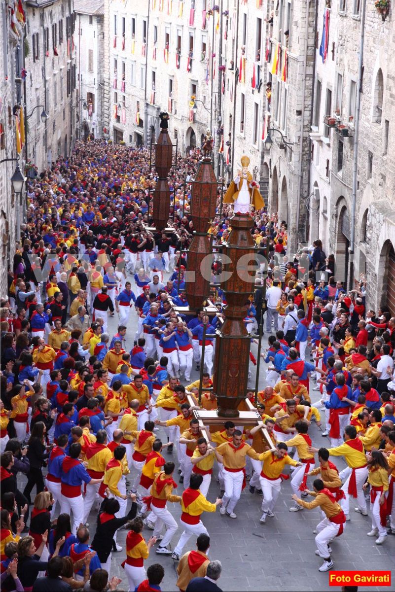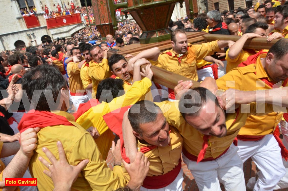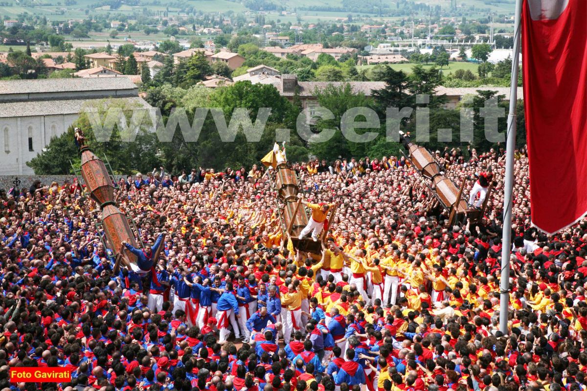 La ville de Gubbio attend le 15 mai afin de rendre les honneurs à son saint patron S. Ubaldo. Cet hommage est à base de foi, de fatigue, de souffrance et de joie. Pour les citoyens, le plus important est que le cierge ne tombe pas ou ne se courbe dangereusement pendant la course. Il arrive souvent que le cierge ou les statues soient endommagés, mais il est extrêmement rare qu’il y ait des blessés parmi les ceraioli et le public. L’essentiel est que le cierge arrive sain et sauf à la basilique afin de rendre hommage au corps inaltéré de S. Ubaldo.