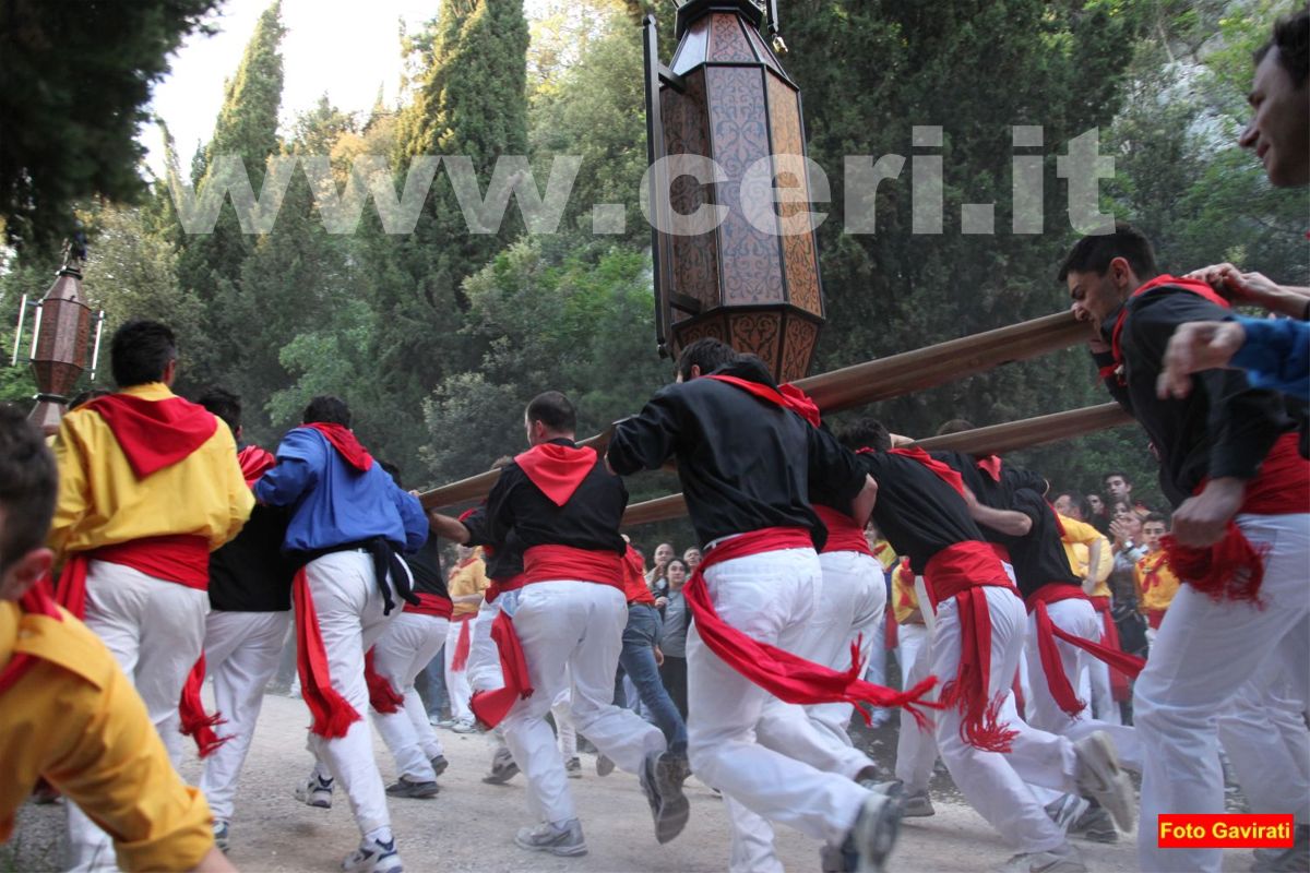 On appelle ceraioli les porteurs de cierges et chacun est rattaché à un seul des cierges. Ce rattachement est le fruit d’un choix personnel ou déterminé par des traditions familiales. Selon la tradition, les corporations des maçons et des sculpteurs seraient liées au cierge de S. Ubaldo ; les commerçants à celui de S. Giorgio et les agriculteurs, les propriétaires terriens et les étudiants à S. Antonio. Les Cierges sont portés en courant par les ceraioli sur leurs épaules. Ceux-ci parcourent les rues citadines et après de brèves pauses atteignent le sommet du mont Ingino, dans la Basilique de S. Ubaldo. Le dernier tronçon, qui est entièrement en montée est parcouru en 9 minutes environ.
