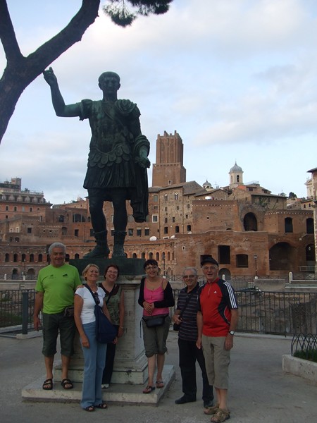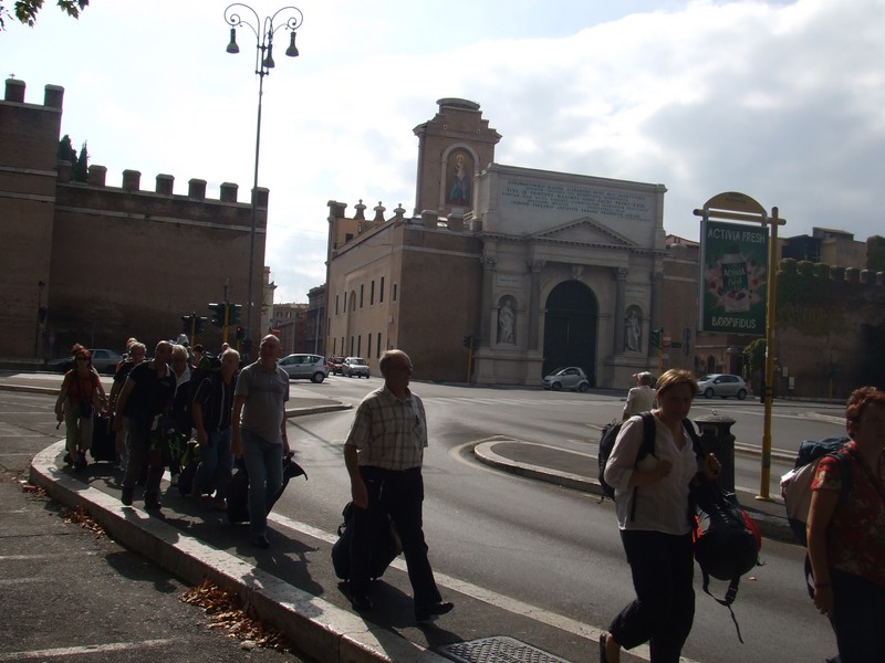 6 h 30 : les deux mini-bus conduits par Gérard et Henri quittent St Pierre de Fronze avec 15 pèlerins en direction de l'aéroport de Toulouse Blagnac. Dans le même temps, 7 autres pèlerins partis d'Albi et Alban nous rejoignent pour prendre l'avion. Le vol est rapide, puisque partis à 10 h 15 de Toulouse, nous arrivons à Rome à 11 h30. Apres un transfert en bus vers le centre-ville, nous terminons le chemin à pied pour arriver chez les soeurs ursulines qui nous hébergent et que nous retrouvons avec joie. En effet, nous étions déjà chez elles en 2010. L'après-midi étant libre, chacun choisi le lieu d'une courte visite dans Rome, tour de ville en bus découvert pour la plupart, puis fontaine de Trévi ; le Colysee pour quelques autres. Et pour tous, la traditionnelle "gélato". De leur côté, Pietro, Dino, Bruno et Marisa ont quitté la région de Turin, pour passer par Vercelli, récupérer le Fiat Scudo, « le pullmino » qui sera notre véhicule d’intendance. Le samedi soir, ils arrivent au sanctuaire de La Verna où ils passent la nuit.