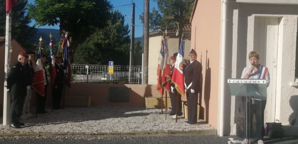 Arrivés vers 9 h au monument aux morts de Caucalières, ils y retrouvent les anciens combattants et une belle assistance pour écouter le discours lu par Marie-Christine SIMON, adjointe au maire Yohan ZIEGLER qui ne pouvait être présent mais néanmoins avait préparé un beau discours. Dépôt de gerbes et minute de silence pour les soldats morts pour la France précèdent le chant « larmes d’ivoire » interprété par Léa et l’indispensable « Marseillaise » chantée par tous.