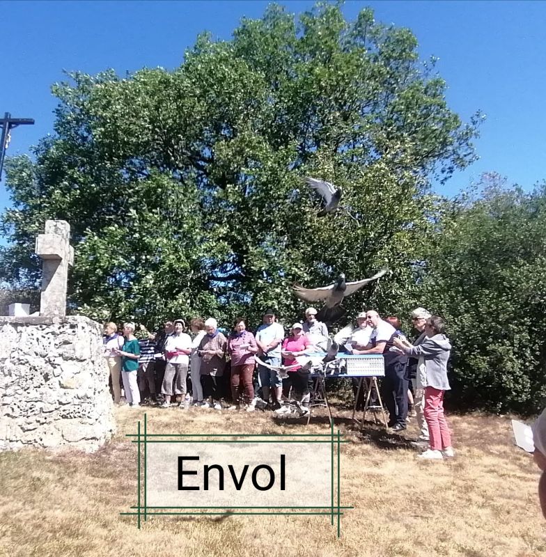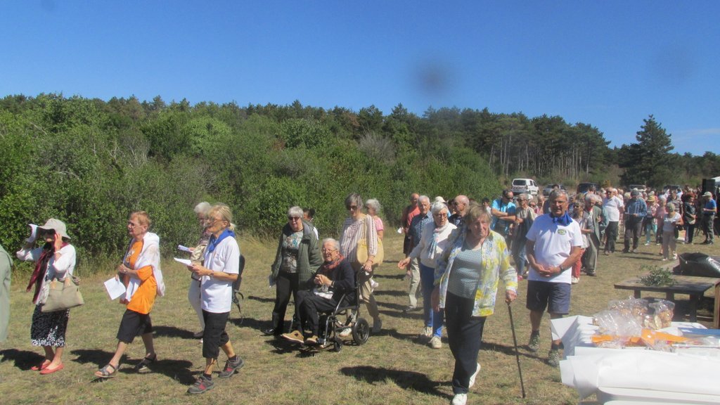 Après la messe, la procession prend la direction du vieux cimetière pour la prière à Marie, l’envol des pigeons de la paix et le chant « Notre Dame des Calcaires ».