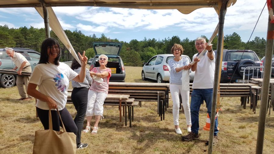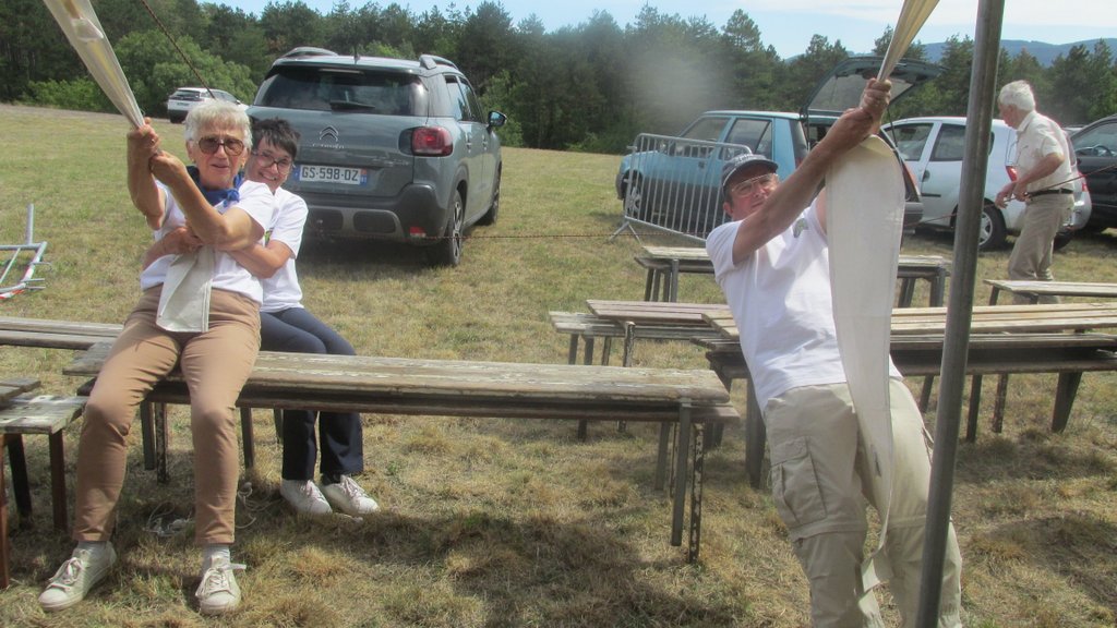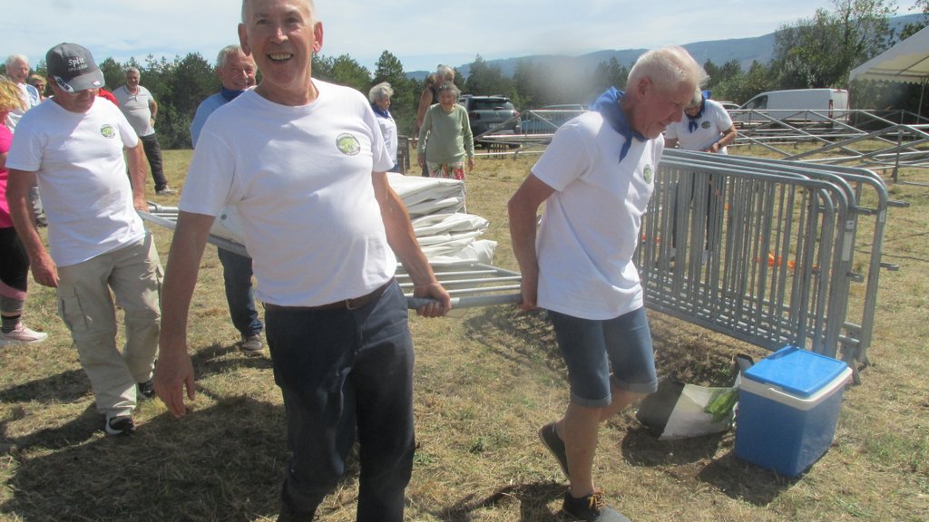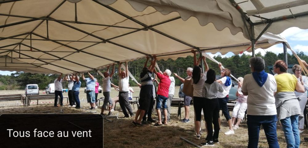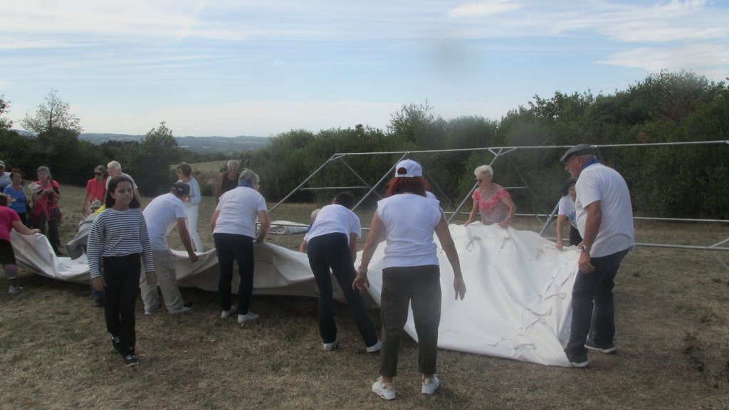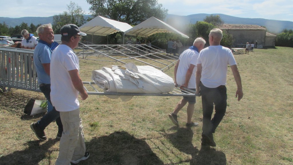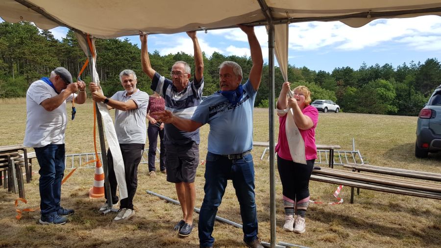 Alors que le chapelet qui conclut ce très beau 78ème pèlerinage va commencer à 15 h, il faut s’activer pour démonter les chapiteaux pour la sécurité de tous et anticiper les problèmes que pourrait causer un fort vent d’Autan.