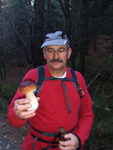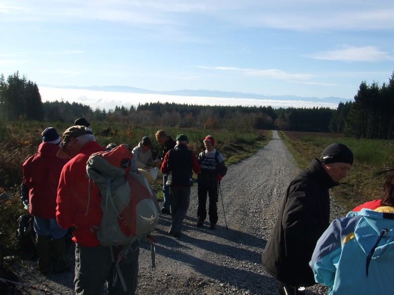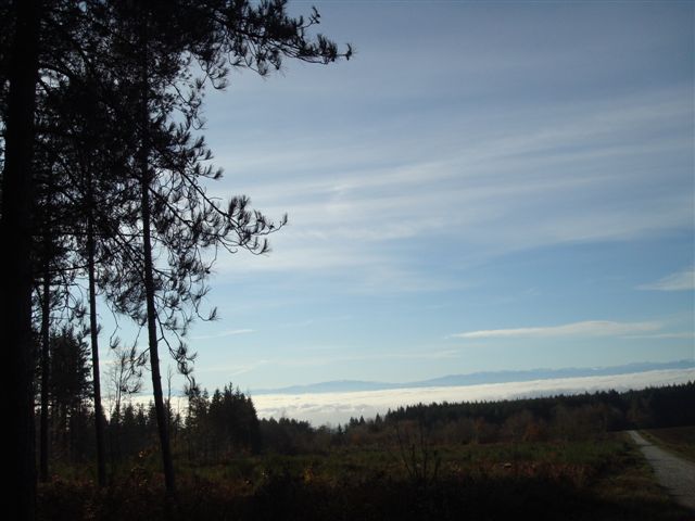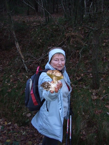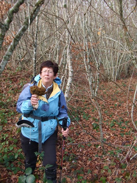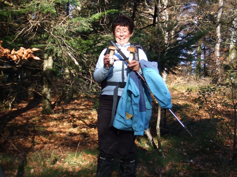 Sans traîner, nous entrons rapidement dans les bois de hêtres, de l’autre côté de la digue à l’abri du vent. Peu de temps après, le soleil fait son apparition alors que le brouillard enveloppe la vallée. Au bord du chemin, déjà un premier cèpe. Et, tout au long de la journée, nous en ramasserons. De quoi faire une belle poêlée.