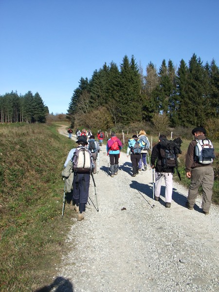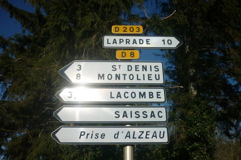 Après une pause d’une grosse demi-heure, mais pas plus, pour ne pas se refroidir, nous repartons pour passer à la prise d’Alzeau, puis au village de Lacombe, où nous avions dormi en 2008, au soir de notre premier jour de marche vers Lourdes.