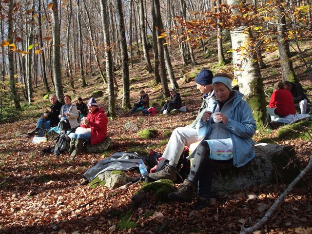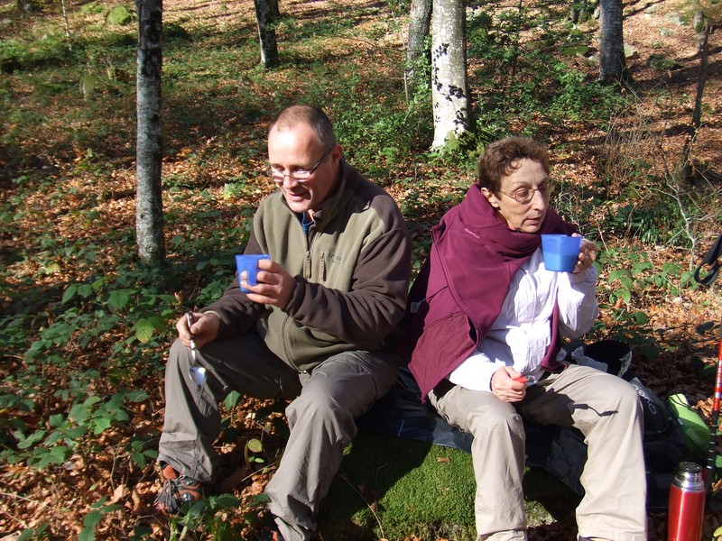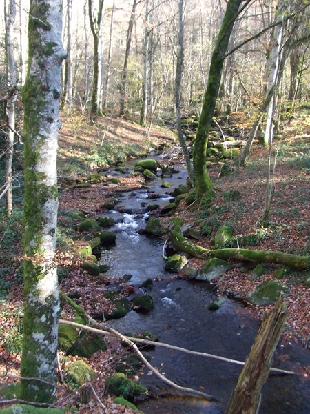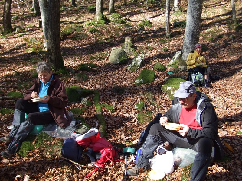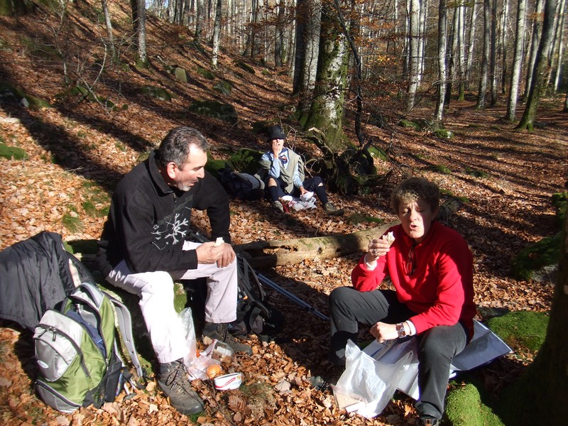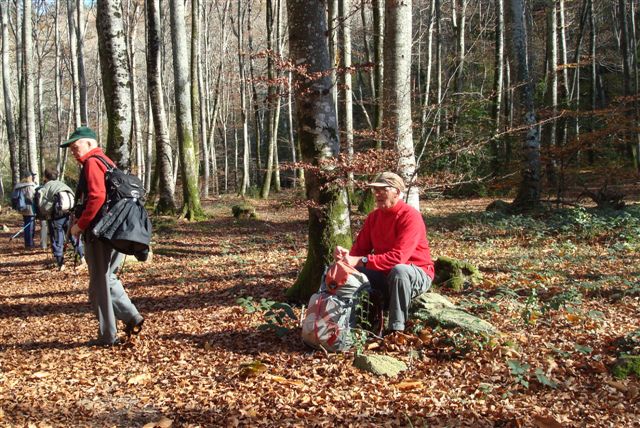 Alors, après avoir contourné le lac, nous entrons par un sentier au bord de l’Alzeau, dans une merveilleuse forêt de hêtres ; à l’abri et dans un décors de premier choix, nous pique-niquons de bon appétit.