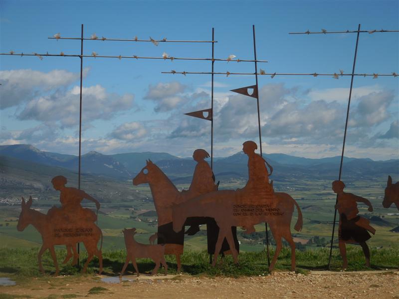 Dimanche 4 juin : Nous venons de faire notre plus longue étape : 28 kms. Nous sommes à Los Herrerías au pied du célèbre Cébrerio qui nous attend demain. Le temps est plus frais dans un paysage plus accidenté. S il fait beau, nous pourrions apercevoir les flèches de la cathédrale de Santiago. Avant hier soir, ce sont des moines bénédictins qui nous ont chanté les vêpres. Enfin, on continue à se régaler et on pense bien à vous. Arrivée prévue à Santiago dans une semaine.