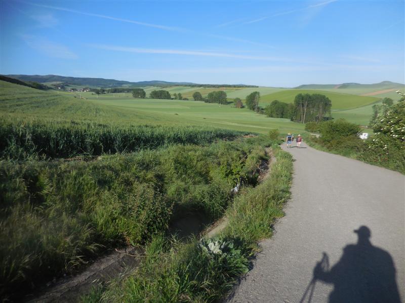 Aujourd’hui encore, une belle étape ensoleillée, à travers les collines au milieu des champs et des prés, en passant par des petits hameaux, paysage ressemblant à celui autour de ND D Orient.