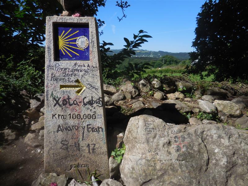 « Mercredi 7 juin : Nous venons de passer la borne des 100 derniers kilomètres et dormons à PORTOMARIN.